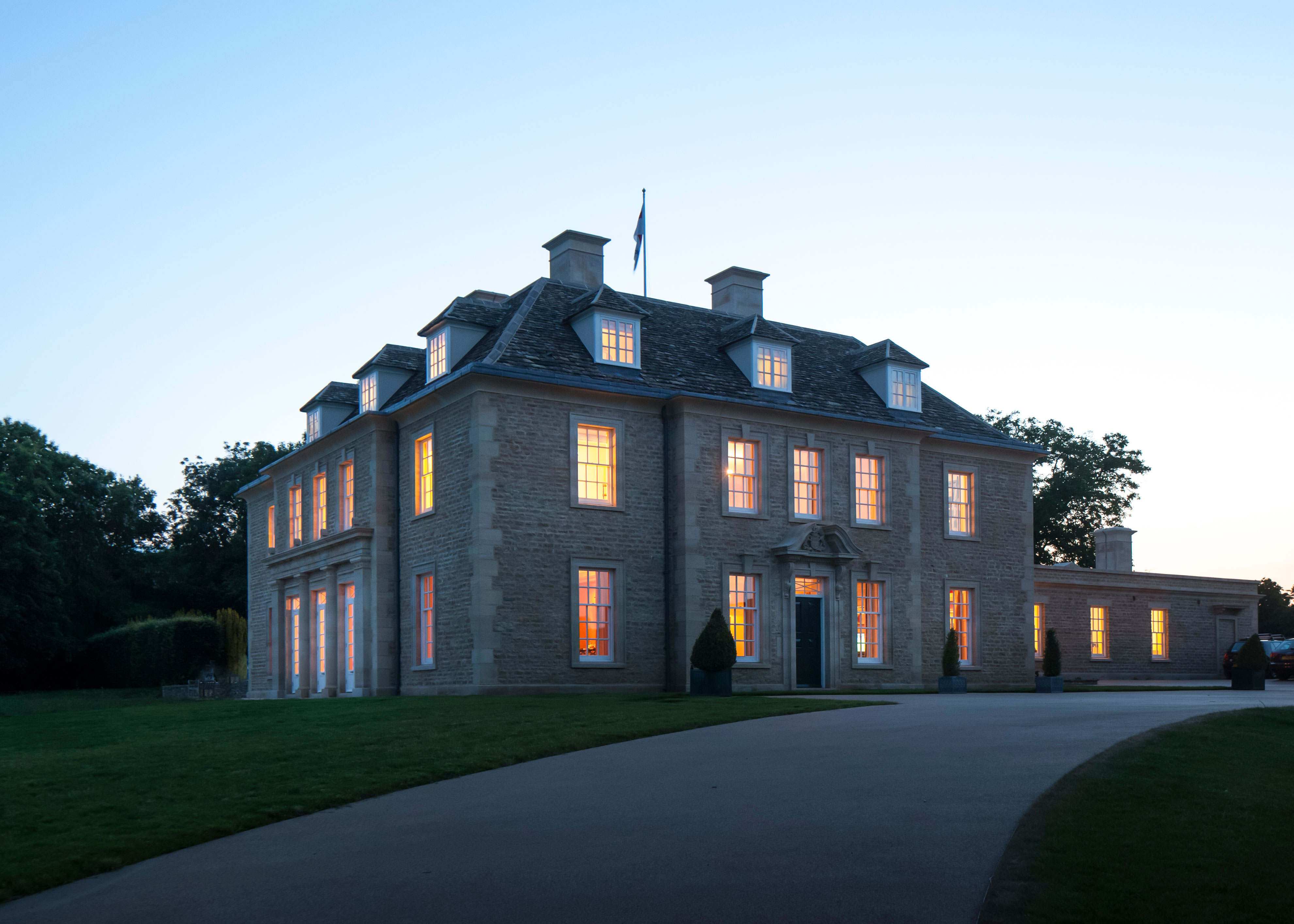 This large classical revival house sits in a glorious hilltop site, overlooking one of the most beautiful parts of the Cotswolds. Ingenious planning strategies enabled us to secure consent for the replacement of what was a very modest house, and we believe this is one of the most significant new country houses built in Gloucestershire over the last century. It was also fortunate that the core of an original range of buildings from the 19th century have been restored and incorporated into the new service yard for the building.