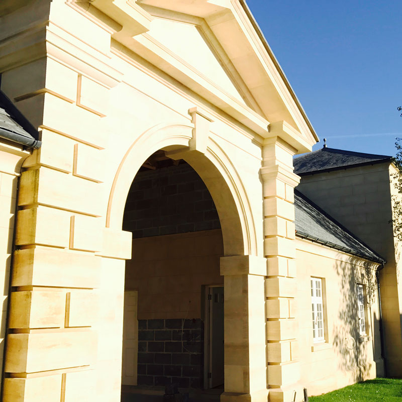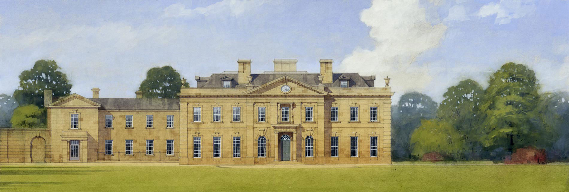 The house was the result of a careful study of precedents to be found in that part of England from about 1740-1760, and the client’s own desire to create a legacy home of outstanding quality and finish. It is built of the finest ashlar stone throughout and has an abundance of architectural detail, including a richly ornamented entrance doorway and surround, and a principal garden opening which is surmounted by a newly conceived family coat of arms.