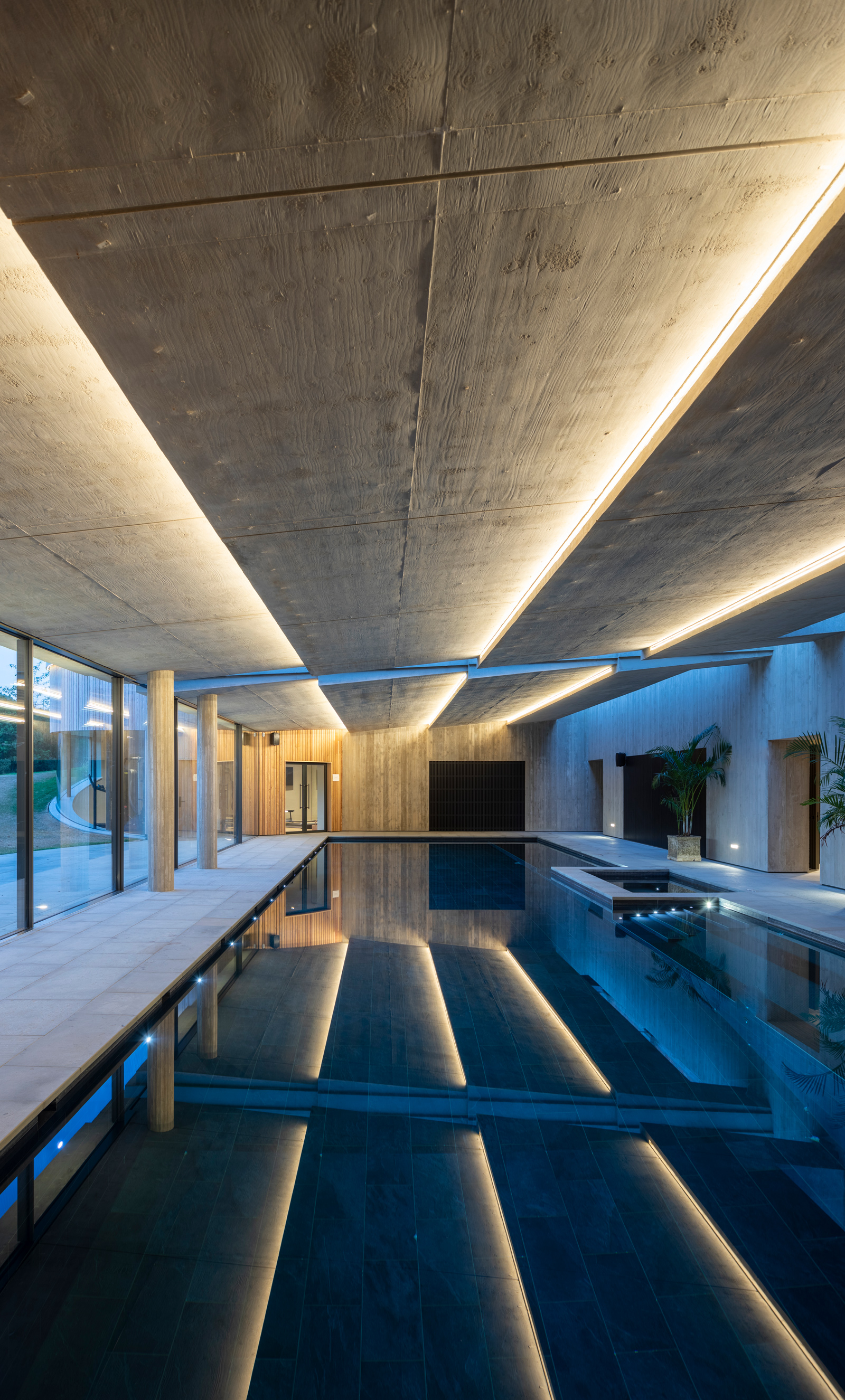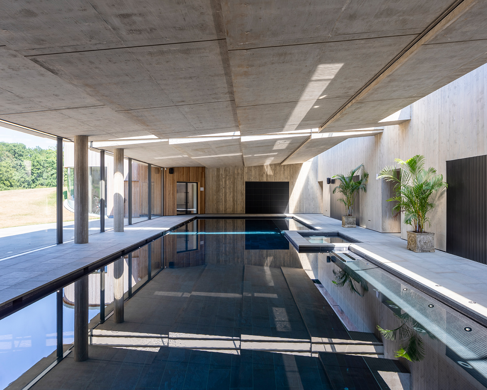 This private family estate sits just outside of a small village in the Berkshire countryside. Whilst the project as a whole involved the extension and complete renovation of the existing main house and the construction of various new estate and entertainment buildings, including lake, boat and tree houses and staff accommodation, the largest element and the main focus of the client brief was the new pool and leisure facilities.