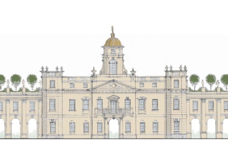 To celebrate the Queen's platinum jubilee, John Goodall, Architectural Editor of Country Life, invited six notable architects to submit ideas for improvements to her London residence. Ross Sharpe's scheme "represents a scaling back of height and gravitas, to a form that although civic, has a more interesting rhythm and approachability"
